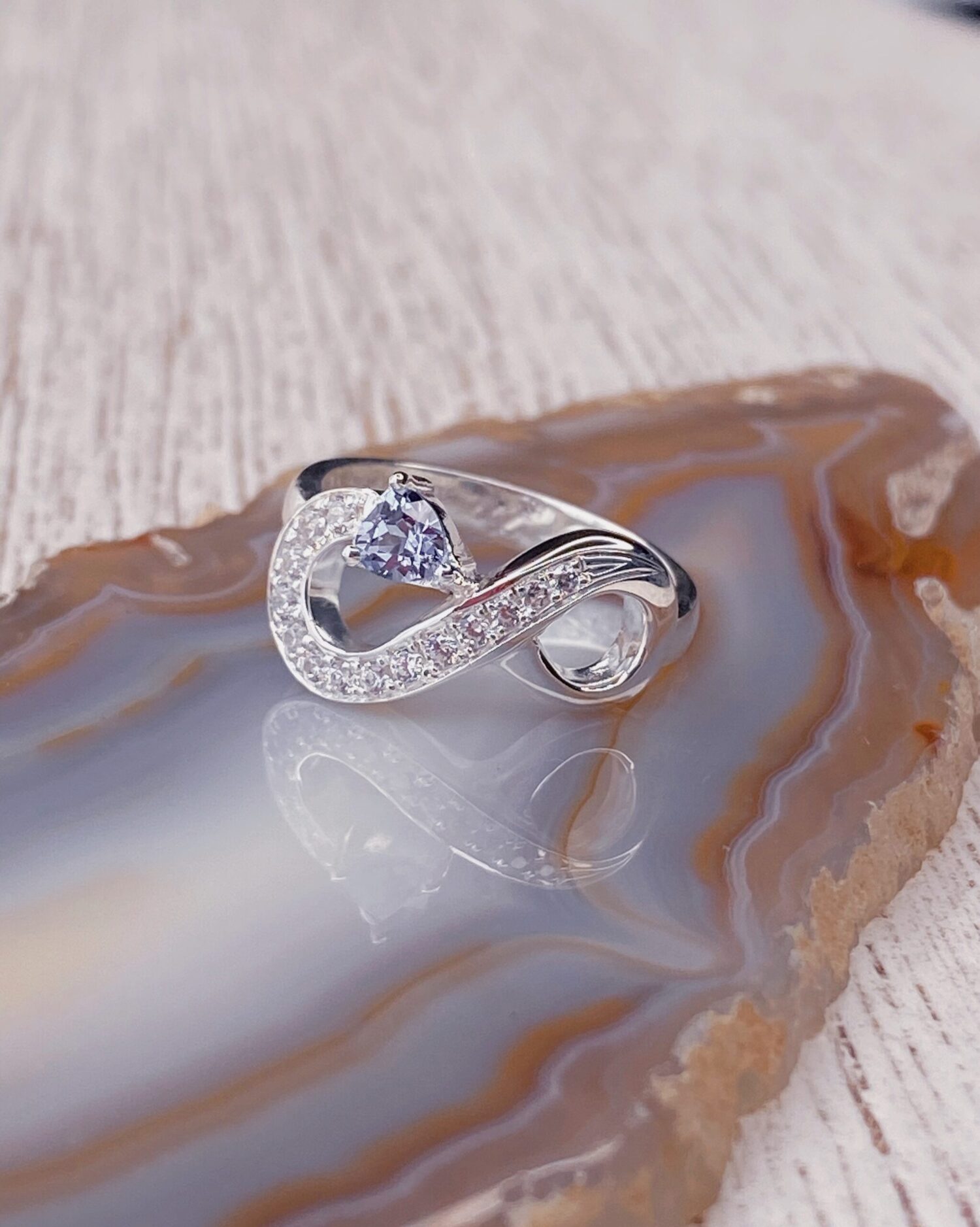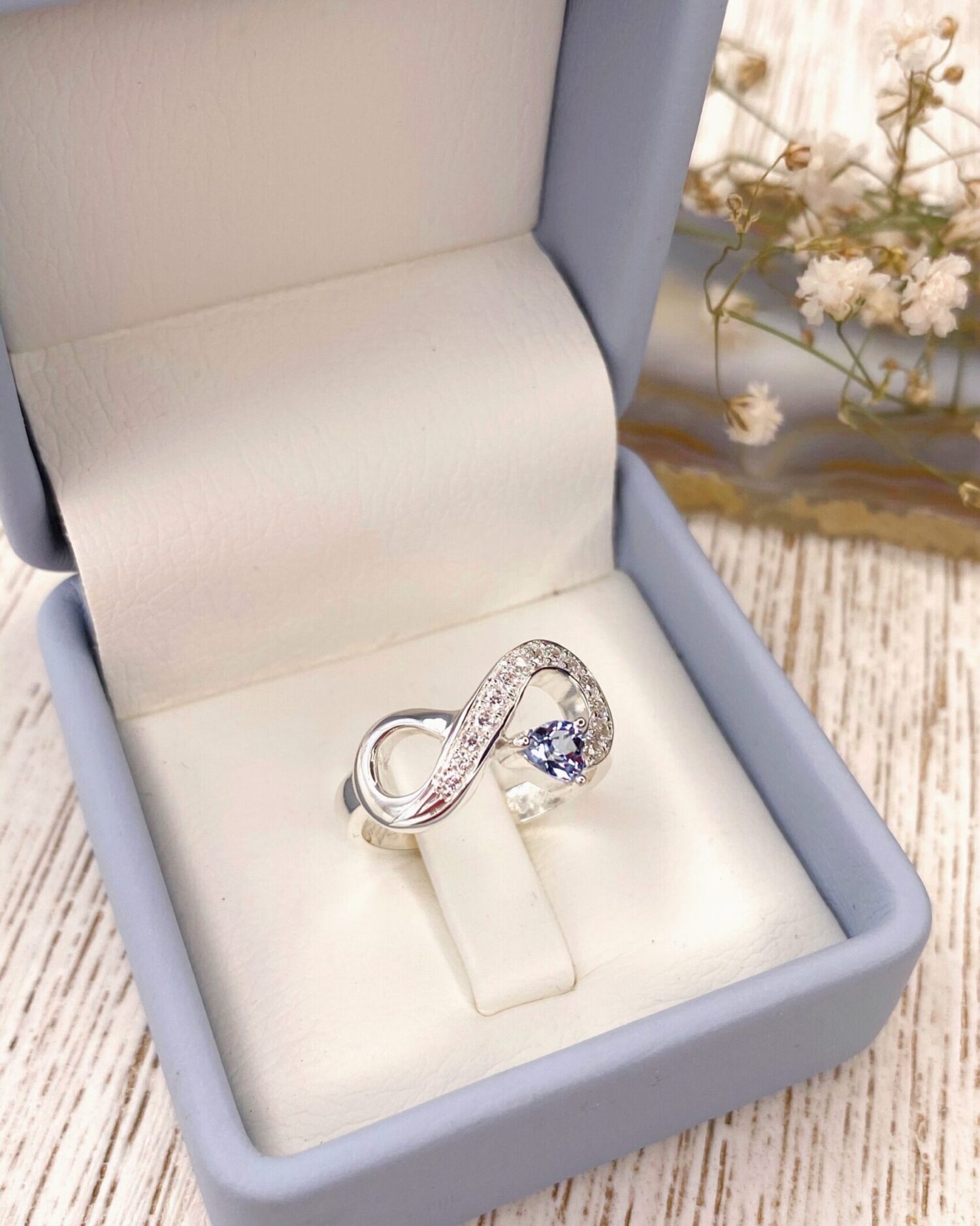 Autentico anillo diseño infinito con diamantes y topacio azul