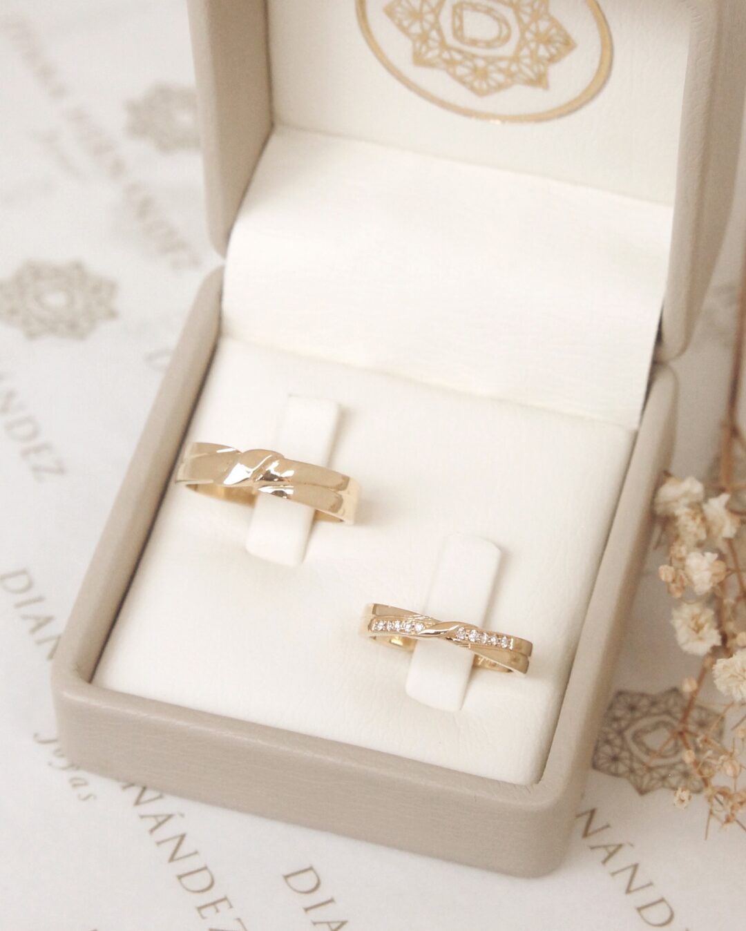 Descubre la belleza de la unión con nuestro par de argollas entrelazadas. Cada argolla representa la unión indivisible de dos almas destinadas a estar juntas, con la argolla de la novia adornada con diamantes que iluminan el camino hacia un futuro lleno de amor y felicidad.
