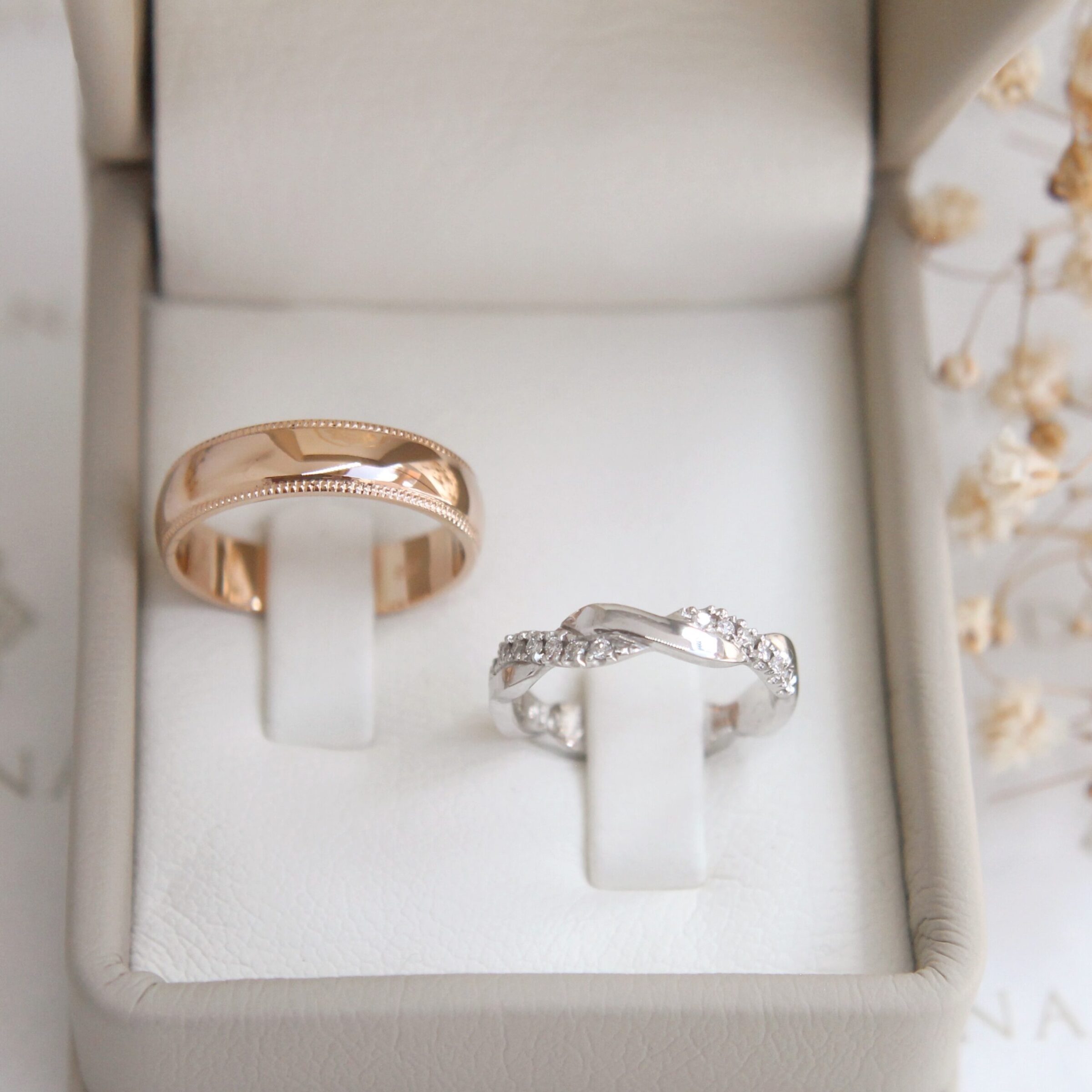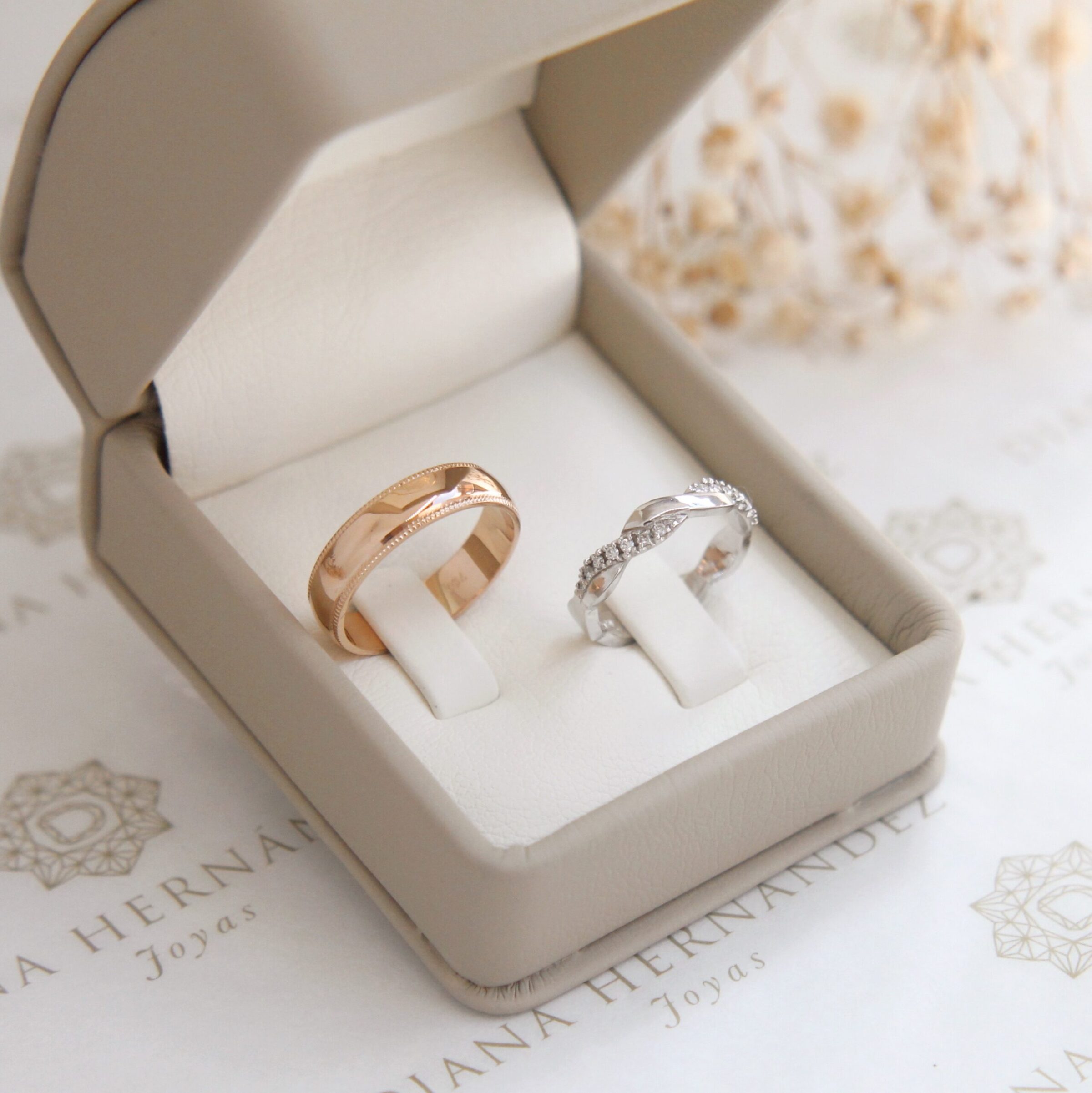 - Argolla de la novia diseño enlazado con inclusiones en pavé en uno de los lazos.