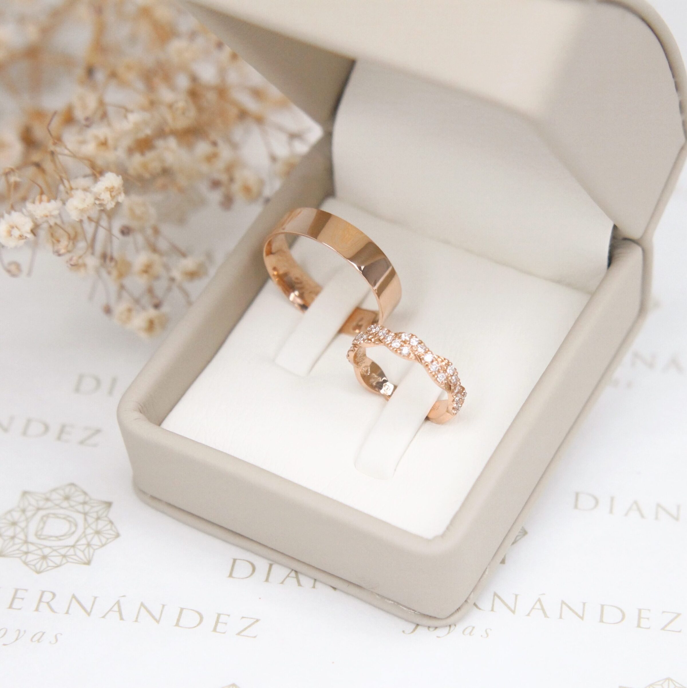 - Argolla de la novia enlazada con incrustaciones en pavé