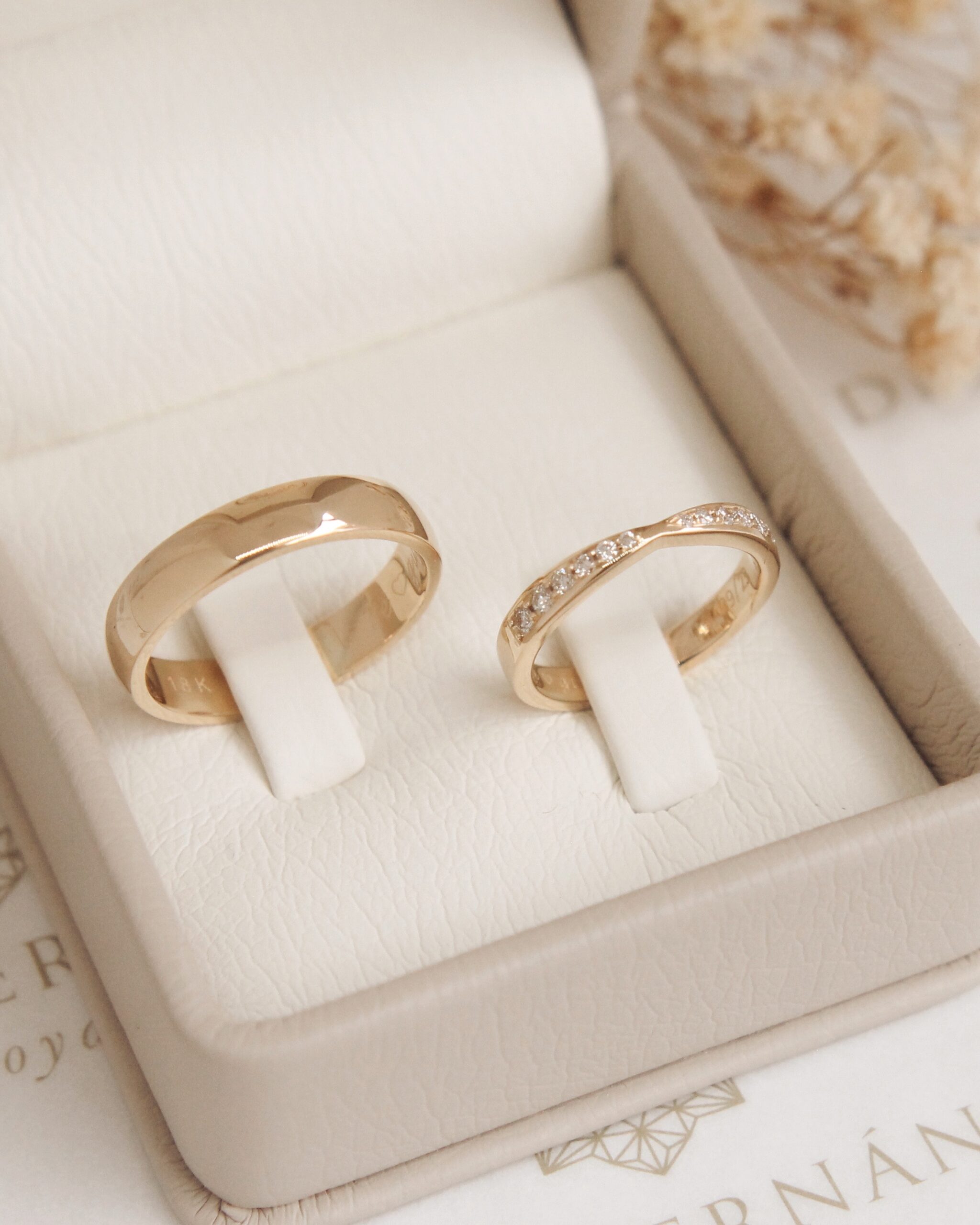 Celebra la unión de dos corazones con nuestro par de argollas, donde la simplicidad se encuentra con la sofisticación. Mientras que la argolla del novio sigue un diseño clásico, la de la novia presenta un engaste de diamantes que se estrechan con gracia en el centro, simbolizando la conexión profunda entre ambos.