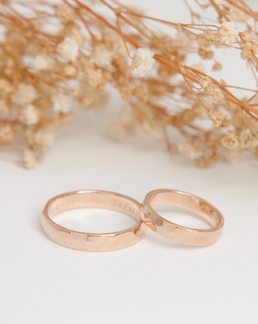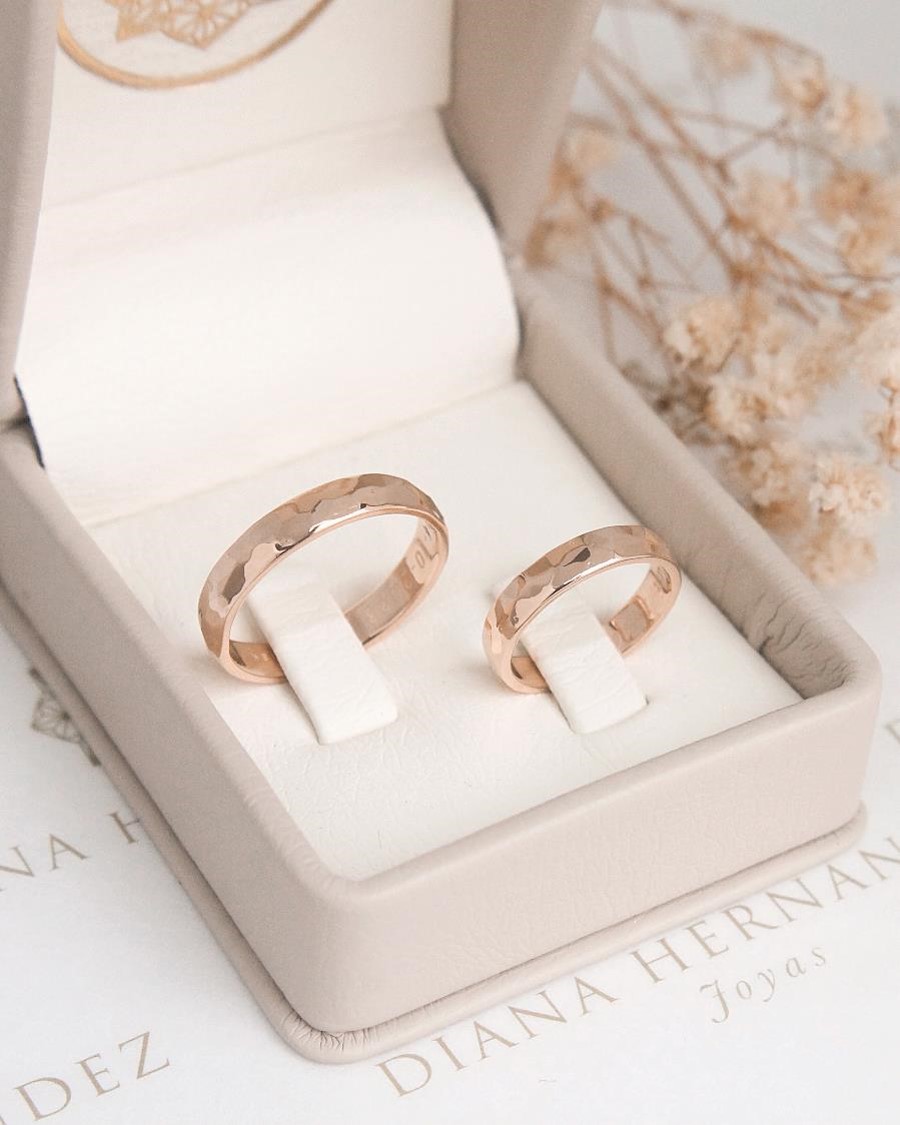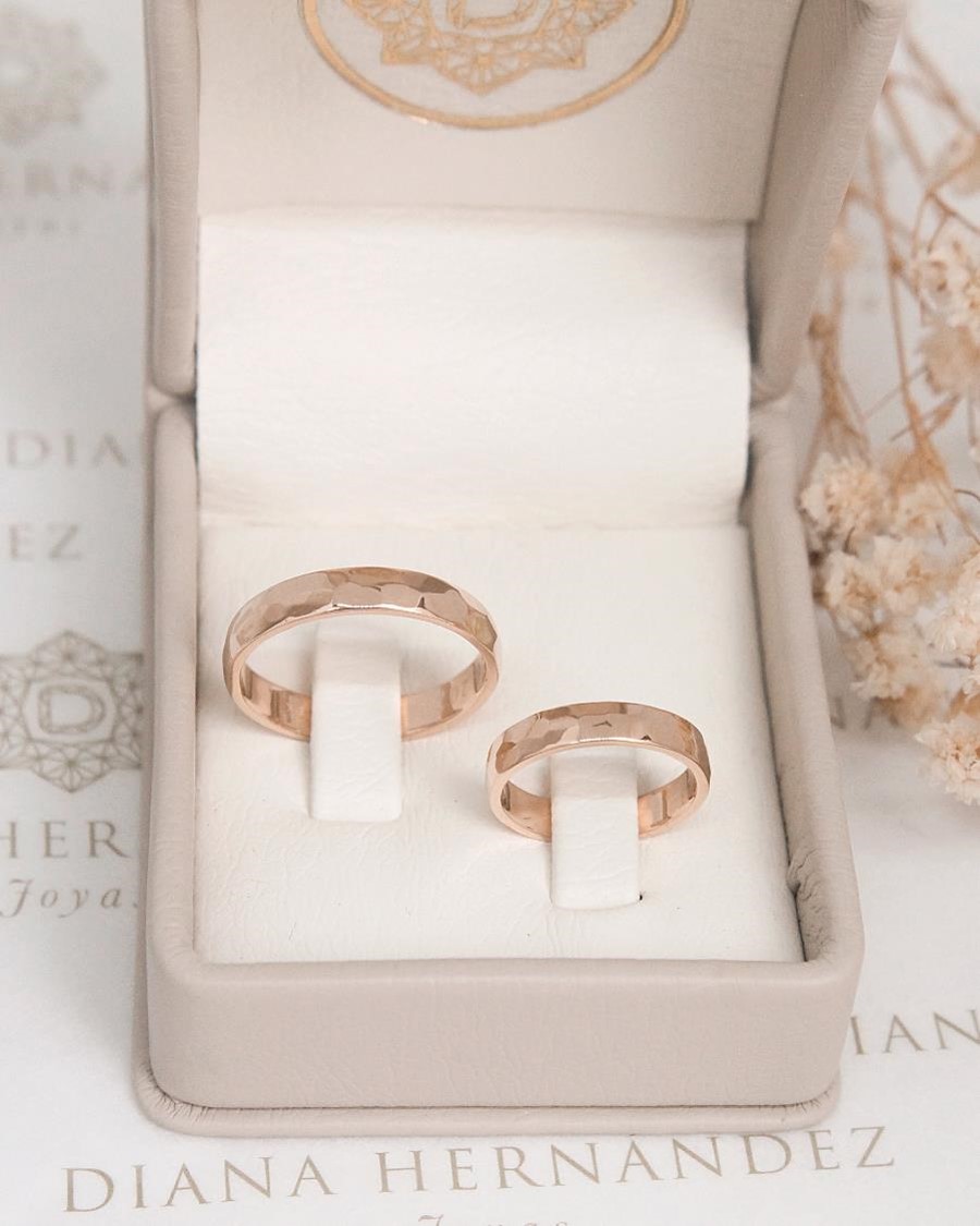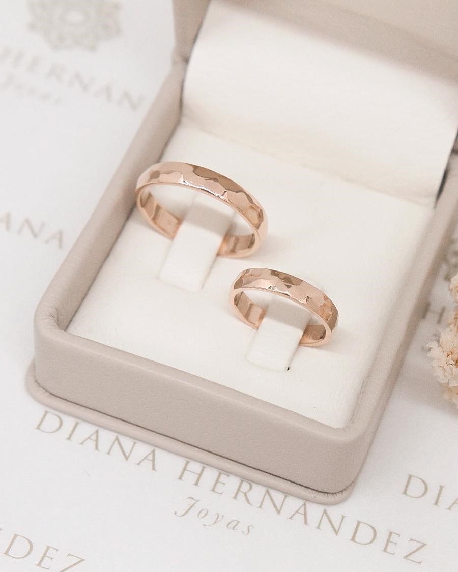 Textura y significado en cada detalle ✨💍 Par de argollas en oro de 18k con forma media caña y un exquisito acabado martillado que resalta su carácter artesanal. Cada textura refleja la belleza de un amor forjado con dedicación y autenticidad, creando una pieza única que simboliza su unión eterna